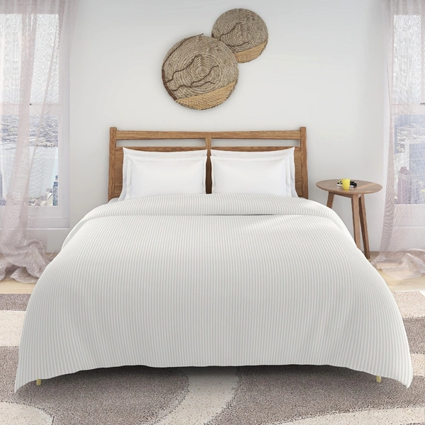 MORADO Glace Cotton Plain Stripe Double Duvet Cover 90x100 Inches | Soft, Breathable & Durable Cotton Duvet Cover for Double Bed(Ivory)