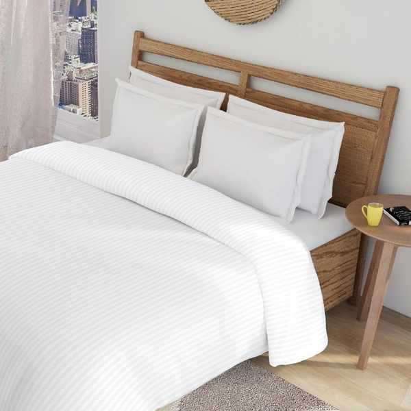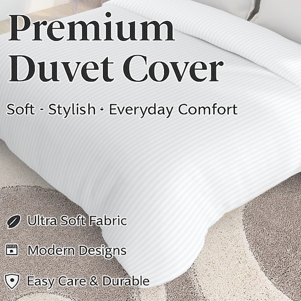 MORADO Glace Cotton Plain Stripe Double Duvet Cover 90x100 Inches | Soft, Breathable & Durable Cotton Duvet Cover for Double Bed(White)