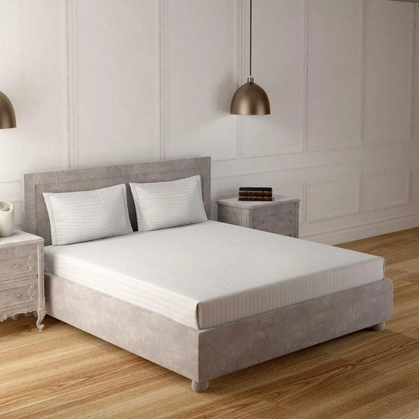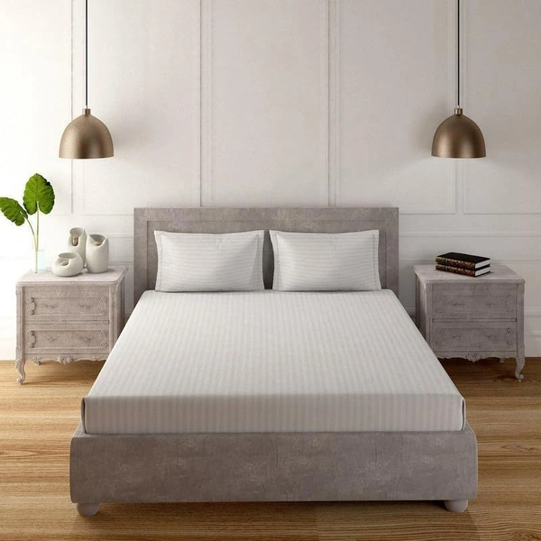 MORADO Premium Glace Cotton Stripe Double Bedsheet With 2 King Size Pillow Covers for Home-Hotels-Guest House (90x100 Inches)