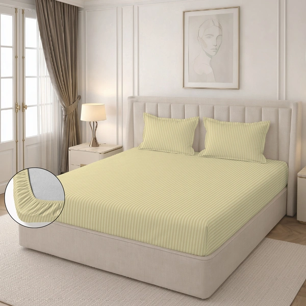 MORADO Premium Glace Cotton Stripe Double Fitted Bedsheet With 2 King Size Pillow Covers for Home-Hotels-Guest House (90x100 Inches)