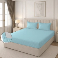 MORADO Premium Glace Cotton Stripe Double Fitted Bedsheet With 2 King Size Pillow Covers for Home-Hotels-Guest House (90x100 Inches)