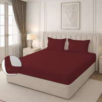 MORADO Premium Glace Cotton Stripe Double Fitted Bedsheet With 2 Pillow Covers for Home-Hotels-Guest House (72x78x8) Inches-Maroon