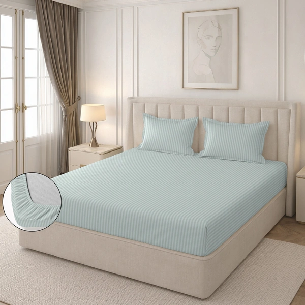 Upgrade your bedroom with the elegant and comfortable MORADO Double Fitted Bedsheet (Stripe Design). Crafted from premium quality glace cotton, this bedsheet offers a soft, smooth feel and long-lasting durability. The modern stripe pattern adds a stylish touch to your bedroom décor, making it perfect for everyday use.