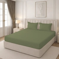 MORADO Premium Glace Cotton Stripe Double Flat Bedsheet With 2 King Size Pillow Covers for Home-Hotels-Guest House (90x100 Inches)