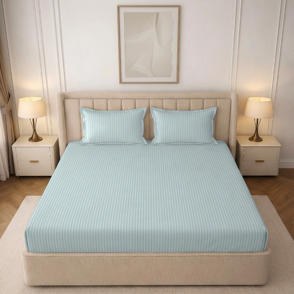 MORADO Premium Glace Cotton Stripe Double Flat Bedsheet With 2 Pillow Covers for Home-Hotels-Guest House (90x100 Inches)-Lightgrey