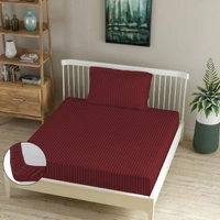 MORADO Premium Glace Cotton Stripe Single Fitted Bedsheet With 1 King Size Pillow Covers for Home-Hotels-Guest House (60x90 Inches)