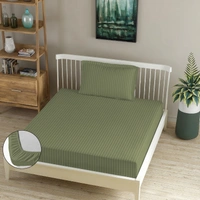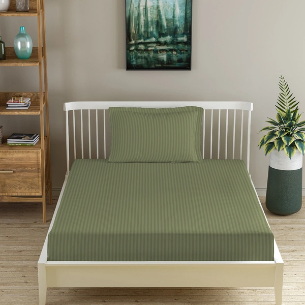 MORADO Premium Glace Cotton Stripe Single Fitted Bedsheet With 1 King Size Pillow Covers for Home-Hotels-Guest House (60x90 Inches)