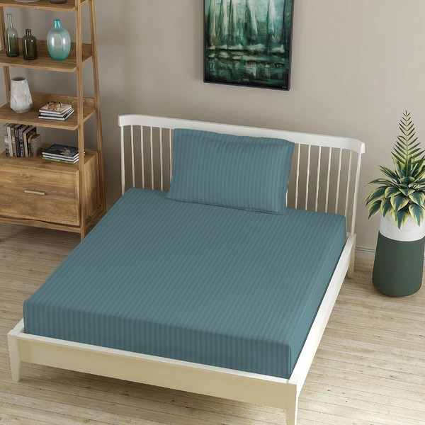 MORADO Premium Glace Cotton Stripe Single Flat Bedsheet With 1 King Size Pillow Covers for Home-Hotels-Guest House (60x90 Inches)