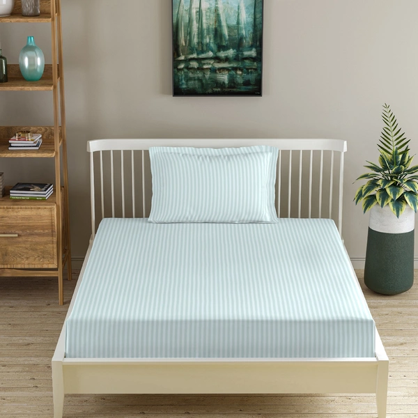 MORADO Premium Glace Cotton Stripe Single Flat Bedsheet With 1 King Size Pillow Covers for Home-Hotels-Guest House (60x90 Inches)