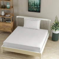 MORADO Premium Glace Cotton Stripe Single Flat Bedsheet With 1 Pillow Cover for Home-Hotels-Guest House (60x90 Inches)-Ivory