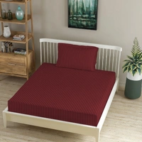 MORADO Premium Glace Cotton Stripe Single Flat Bedsheet With 1 Pillow Cover for Home-Hotels-Guest House (60x90 Inches)-Maroon