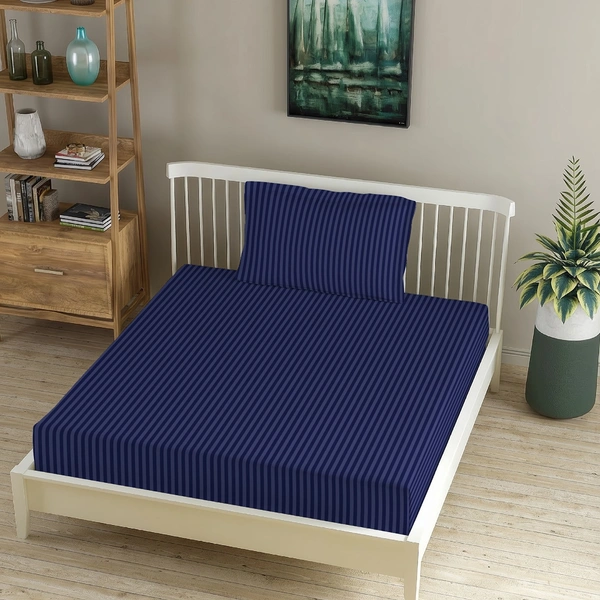 MORADO Premium Glace Cotton Stripe Single Flat Bedsheet With 1 Pillow Cover for Home-Hotels-Guest House (60x90 Inches)-Navyblue